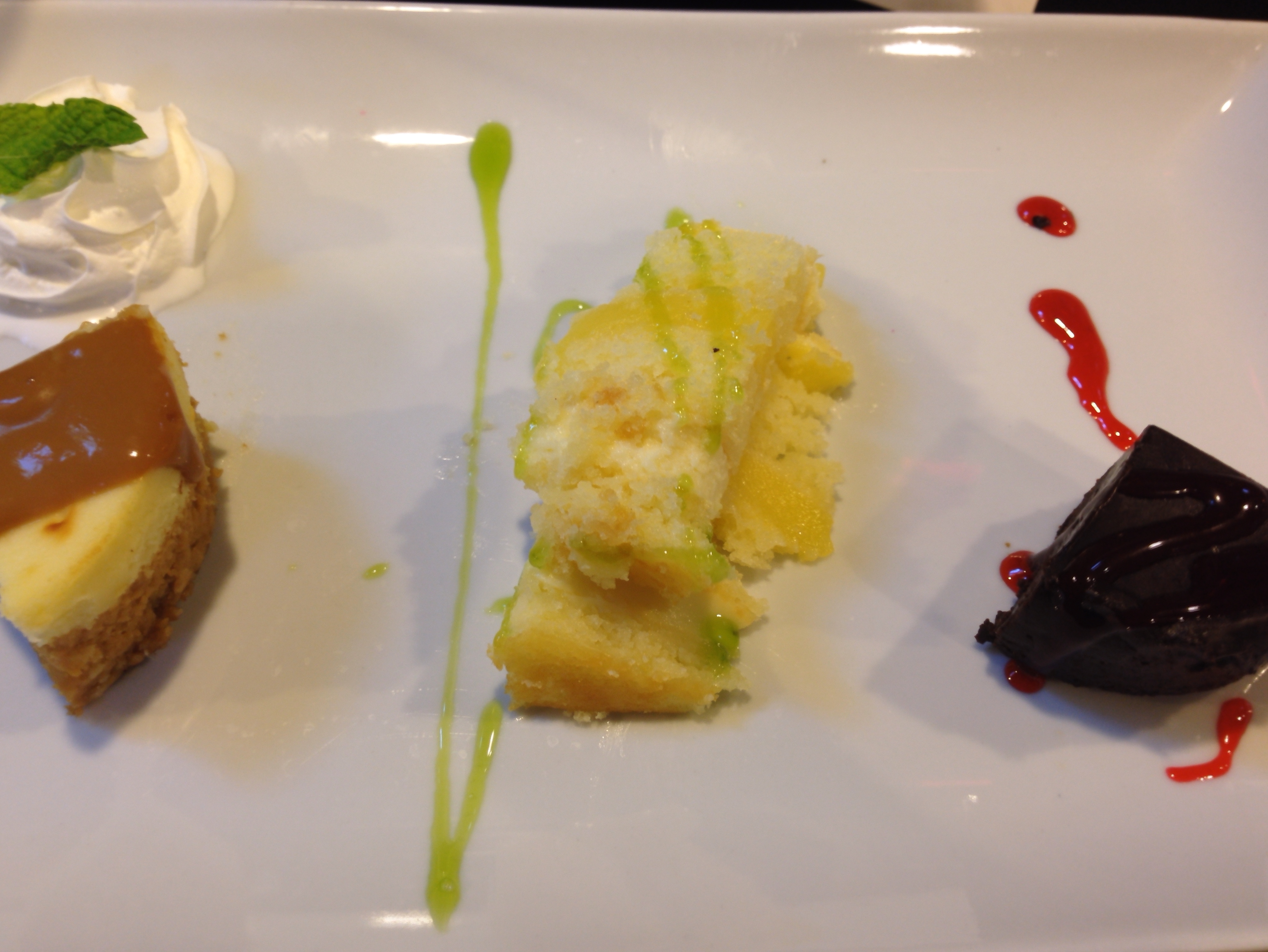 Who can resist a sampler of homemade salted caramel cheesecake, lemon layer cake and gluten-free flourless chocolate cake. Every bite was flavorful and the chocolate cake was oh so intense…in a good way. So rich. SO chocolaty.