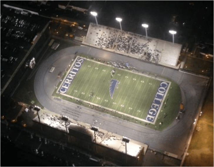 Above is a picture taken over the St. John Bosco High School Football game. During the season the blimp made several trips like this to give the students a special experience. Trips were also made to local schools so students could learn about the blimp and apply what they learned to their math and science lessons.