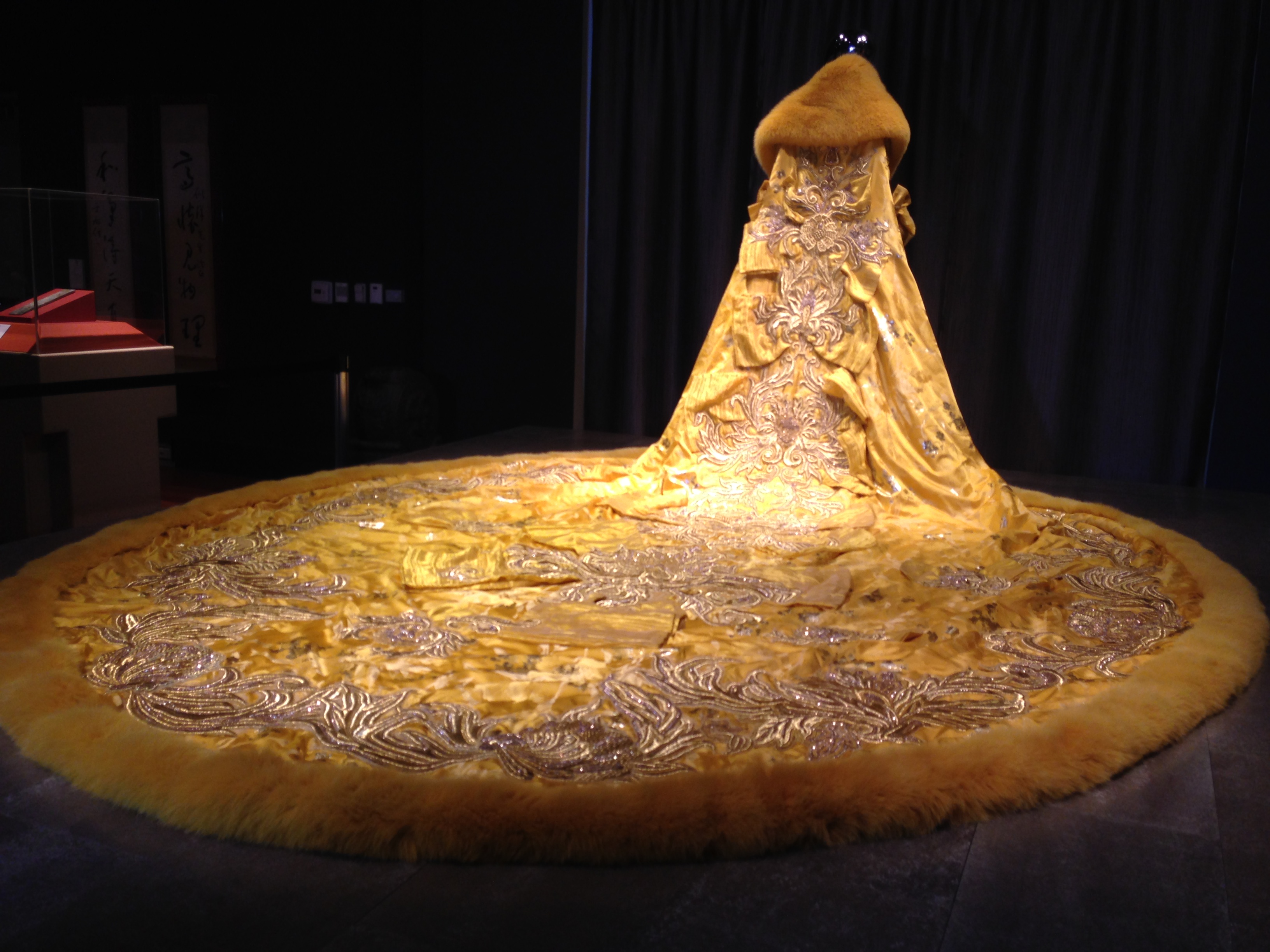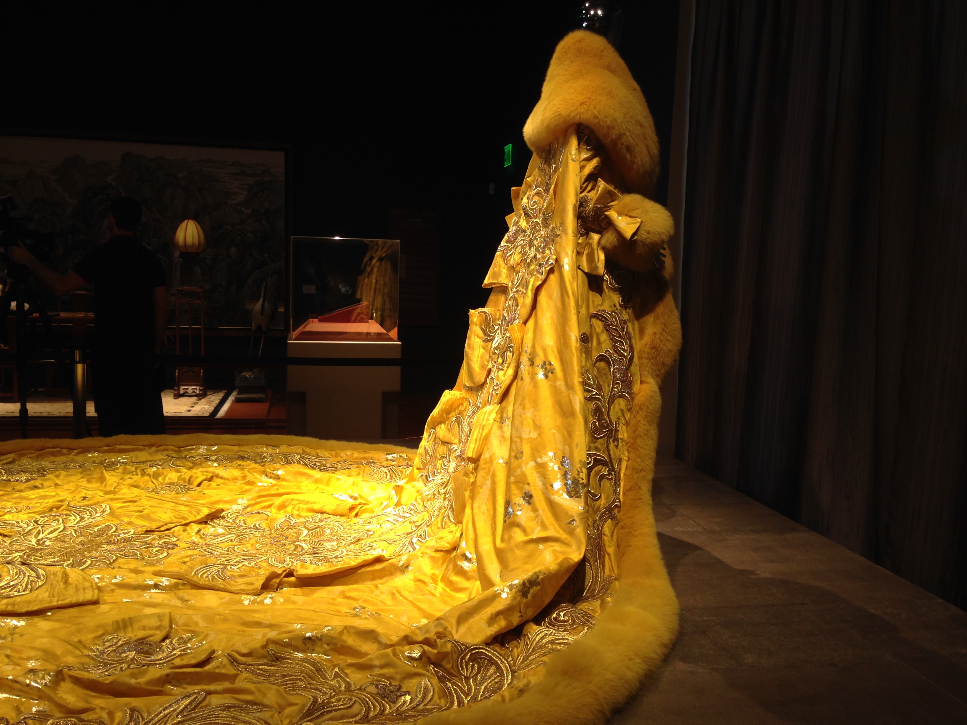 I’m a sucker for that annual event and remember seeing the dress on the red carpet. I’m not a big Rihanna fan and although impressed by vastness of the dress it was far from my favorite. Seeing it in person was a whole different story. It’s gigantic, no doubt about that, but also strikingly beautiful. It’s covered in intricate embroidery and is gold brocade bordered by fur. The train is 9 feet long and the gown weighs about 60 pounds. It’s an incredible piece of handiwork.