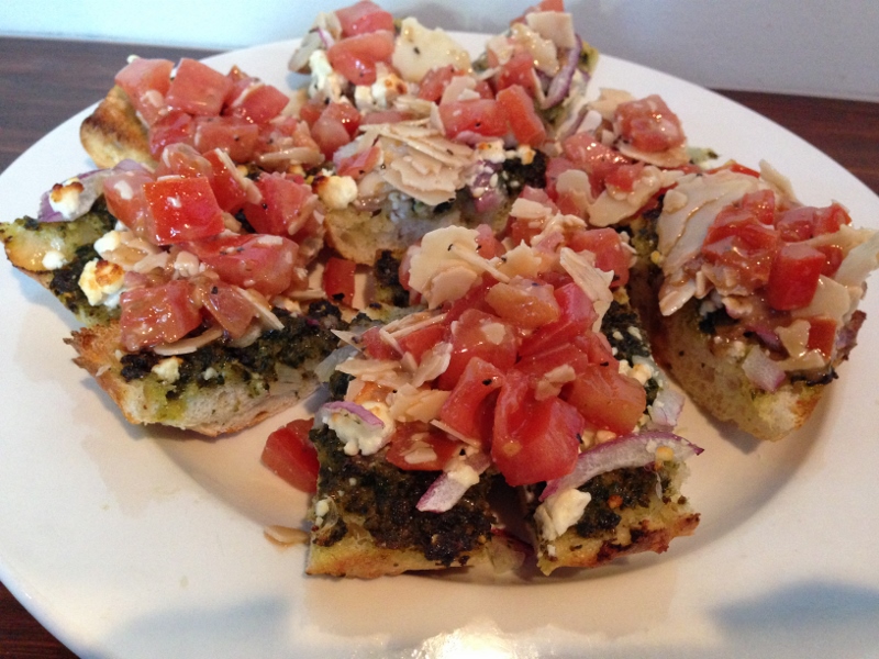 appetizers! We can’t forget the apps! Especially when they’re this tasty. Above are bruschetta and garlic cheese sticks. I was partial to the bruschetta – topped with fresh tomatoes, onions, feta, pesto and balsamic vinaigrette they were a delicious pre-meal snack.