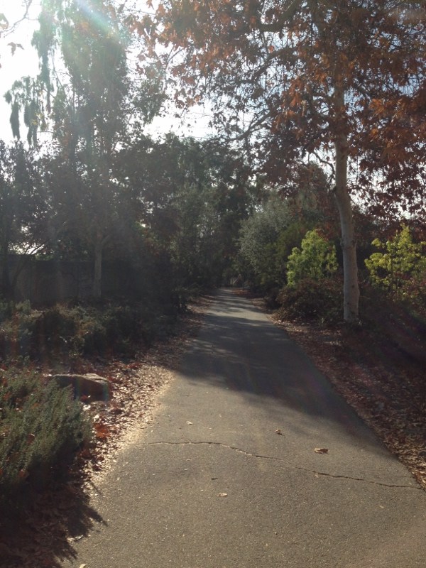 We hadn’t walked very far when the trail spit us out into an ample parking lot (d’oh!) and we found ourselves in the Claremont Hills Wilderness Park. We couldn’t find any continuation of the Thompson Creek Trail so we decided to turn around and take it in the other direction. Turned out to be a good choice. The trail continue on for over 2 miles through lovely foliage.