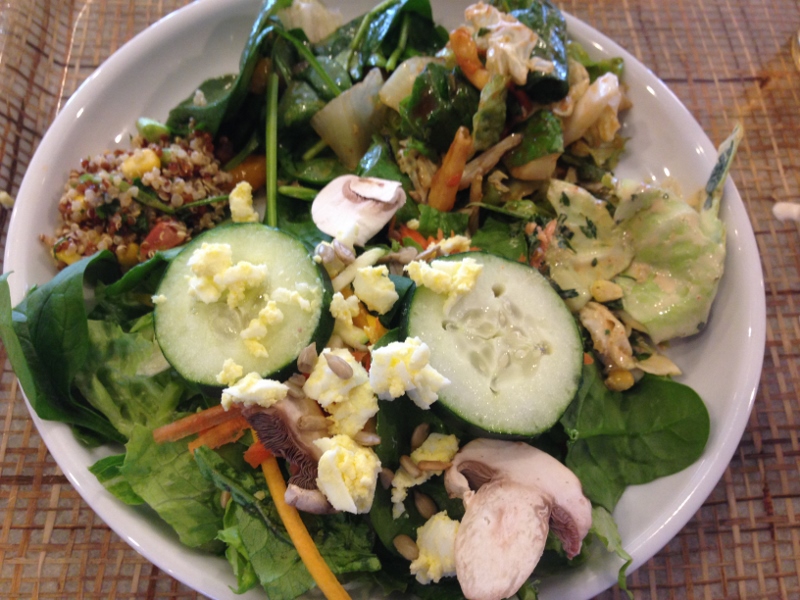 The salad bar is as delicious as I remembered. The tried and true favorites (like Wonton Chicken Happiness and Joan’s Broccolli Madness) remain and new treats have joined them. There are more fresh vegetables to choose from and some delicious new prepared salads like the Chipotle Lime & Cilantro Quinoa.