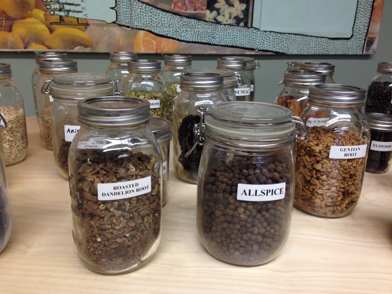 While mingling in the lobby we were invited to discover the various ingredients Greenbar uses. The company is completely organic and is proud to showcase the all natural ingredients used in its recipes. It was fun to see and smell all the herbs and spices going into the liquor.