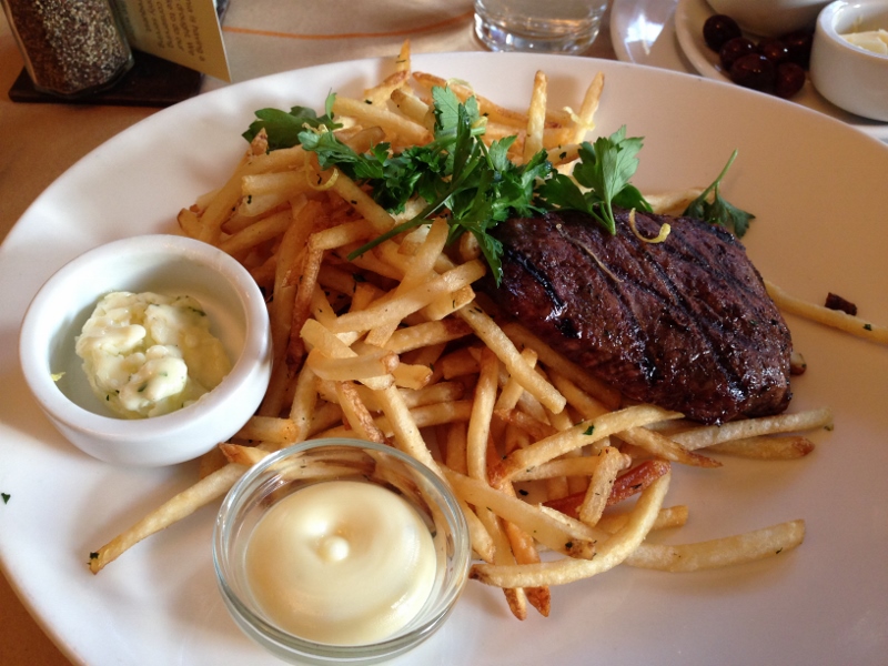 For dinner we diverged and ordered steak frites, a pork chop, and chicken thighs.